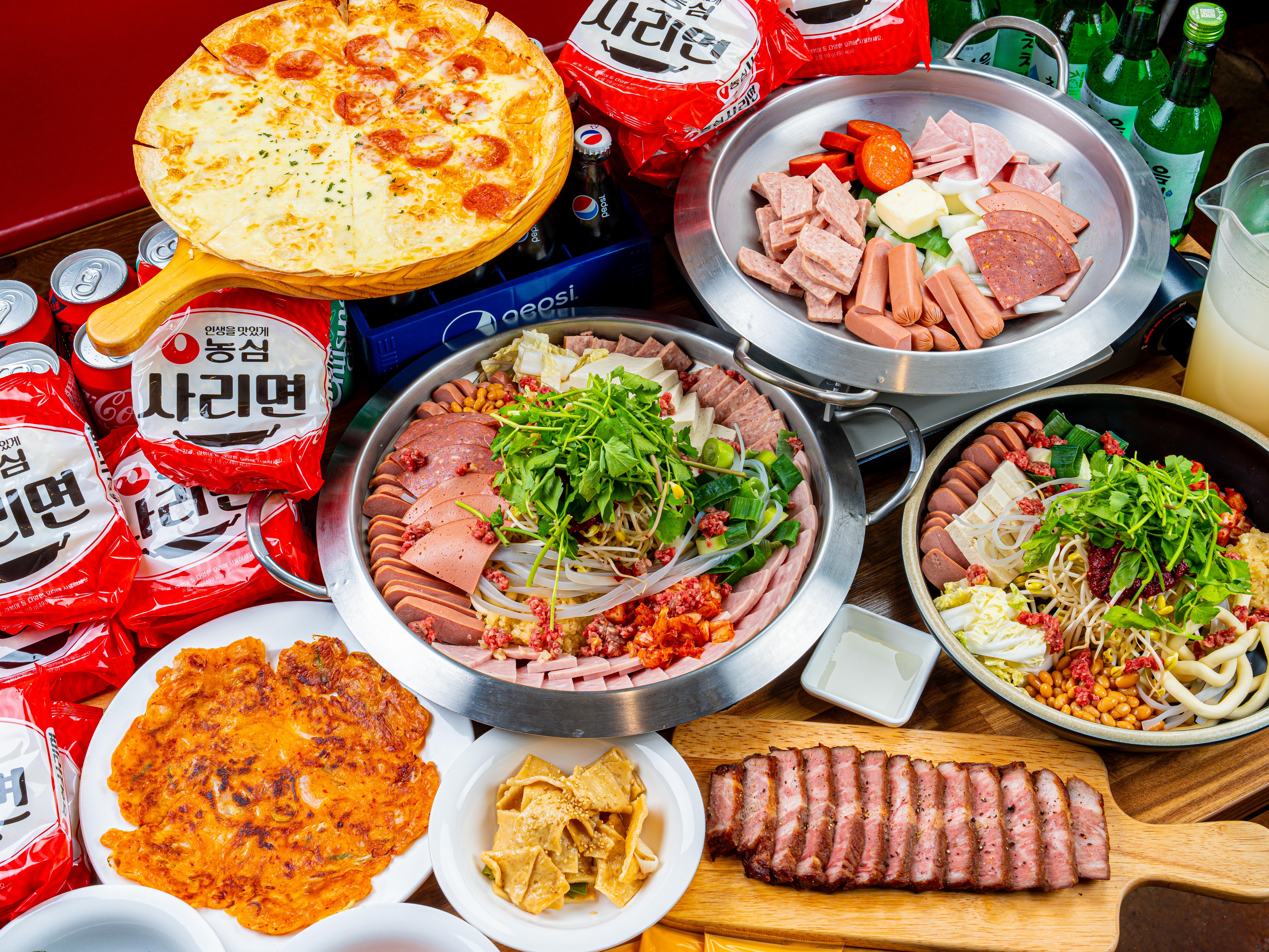 오리지널 부대찌개 2인분 26,000 | 오리지널 부대찌개 3인분 39,000 | 피자주는 부대찌개 2인분 34,000 | 피자주는 부대찌개 3인분 47,000 | 300g 통목살 부대찌개 2인분 37,000 | 300g 통목살 부대찌개 3인분 50,000 | 300g 통목살 스테이크 단품 12,000 | 피자 한판 추가 8,000