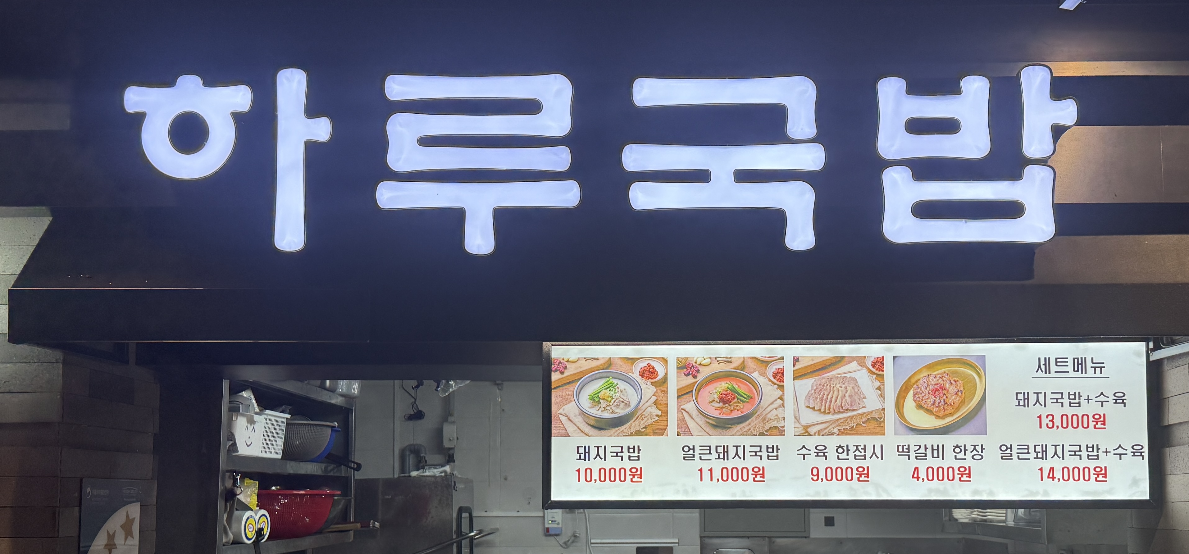 돼지국밥 10,000 | 얼큰돼지국밥 11,000 | 수육 한접시 9,000 | 떡갈비 한장 4,000 | 돼지국밥+수육 13,000 | 얼큰돼지국밥+수육 14,000