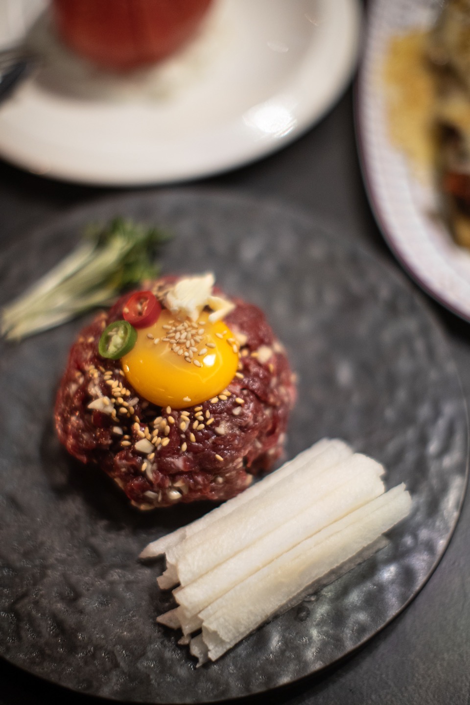 매콤 유린기 28,000 | 라구소스 가지 27,000 | 육전 26,000 | 문어해초무침 35,000 | 차돌된장국수 19,000 | 명란삼합 27,000 | 라구소스 떡볶이 18,000 | 한우 육회 32,000